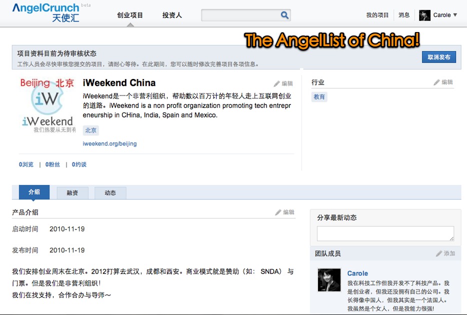 I have been thinking for a long while that China needs an AngelList. AngelList revolutionize the way to raise investment, bringing more transparency and more fair chance for entrepreneurs to get funded regardless of their original network.